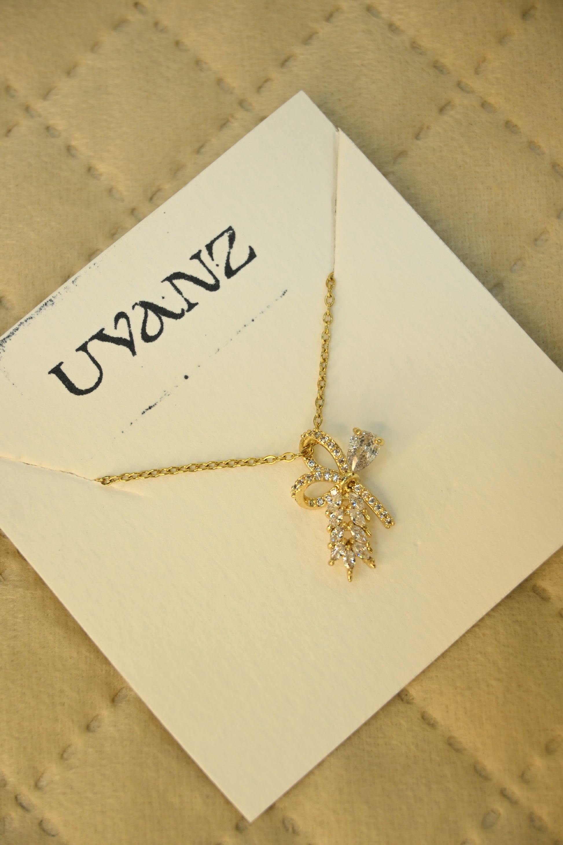BOW & LEAF CRYSTAL PENDANT